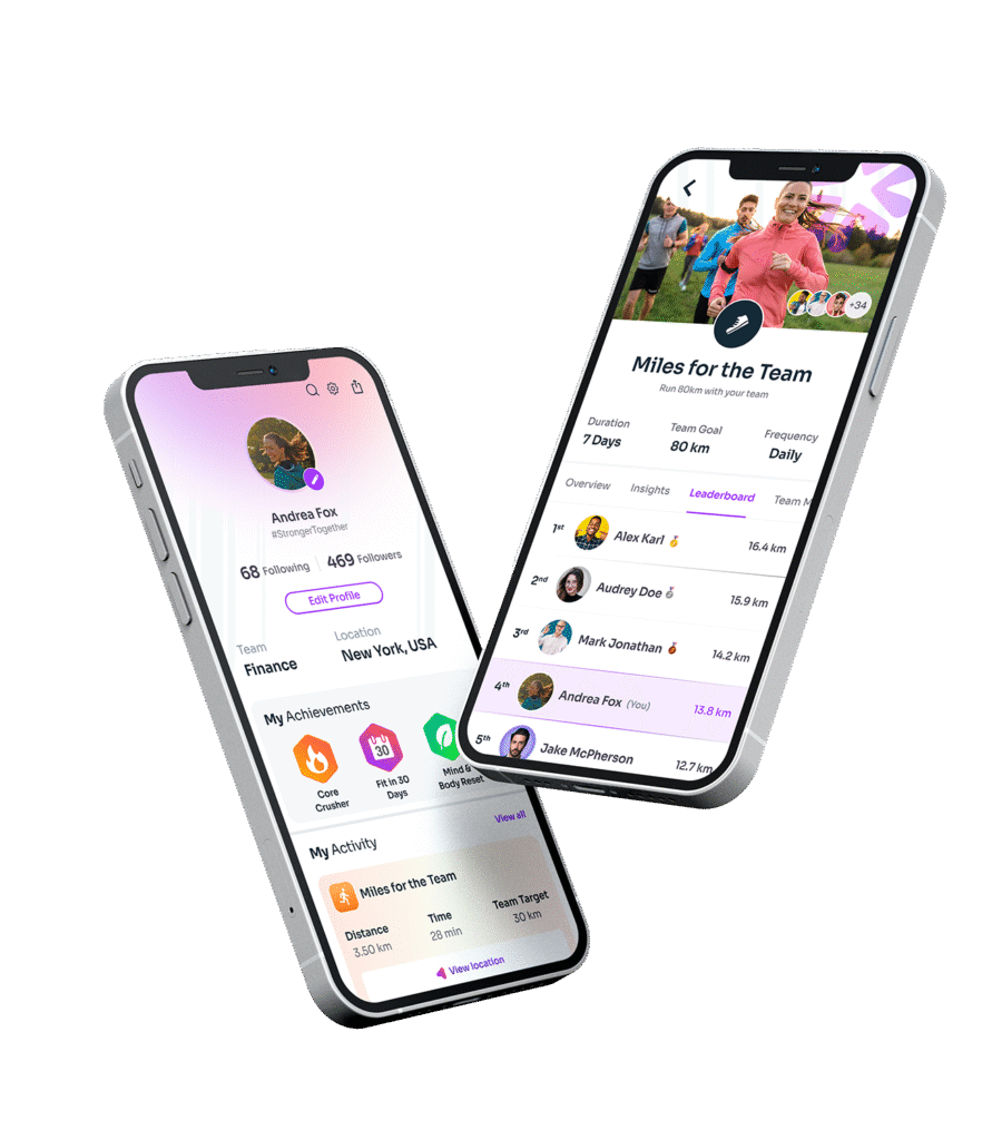 Challenges bring teams together, spark motivation, and turn daily movement into serious fun with a side of friendly competition. All powered by our workplace fitness app.