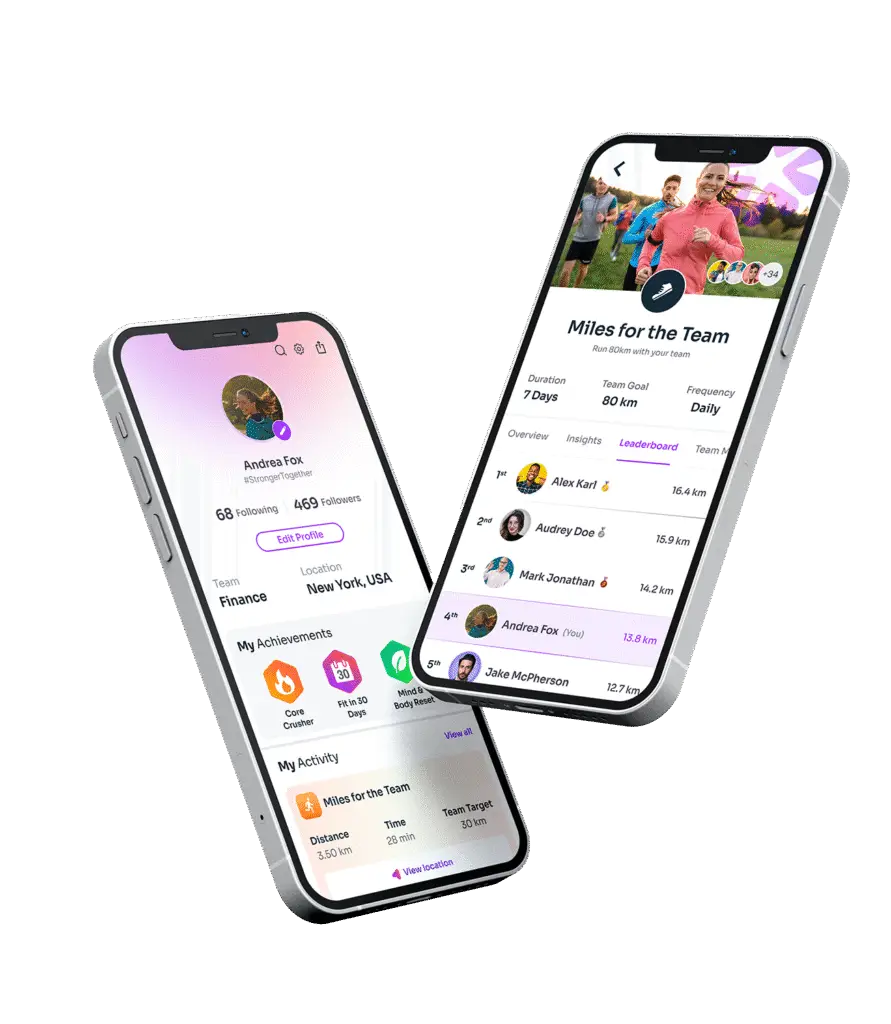 Our challenges, tracking tools, and rewards are built to keep teams active, connected, and feeling good